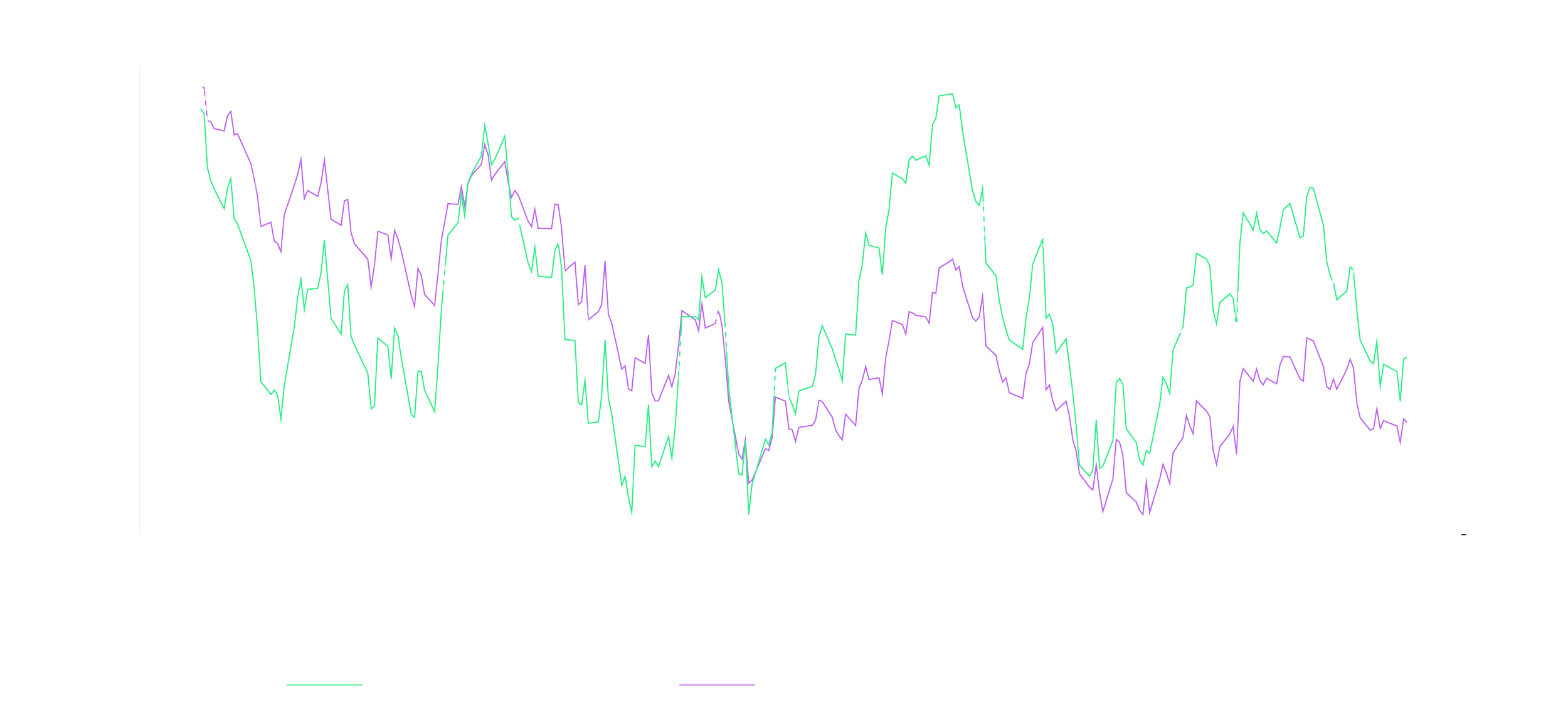 Shows longer-term overbought/oversold conditions (0–100 scale)